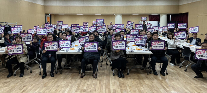 경기 수원시 팔달구 우만1동이 최근 단체원 100여명이 참여한 가운데 우만1동 행정복지센터 3층 대회의실에서 단체 화합과 역량 강화를 위한 '2025 우만1동 단체 다짐대회' 행사를 개최했다. 사진은 행사에 참석한 관계자들이 기념촬영을 하고 있는 모습. (사진=팔달구청 제공)