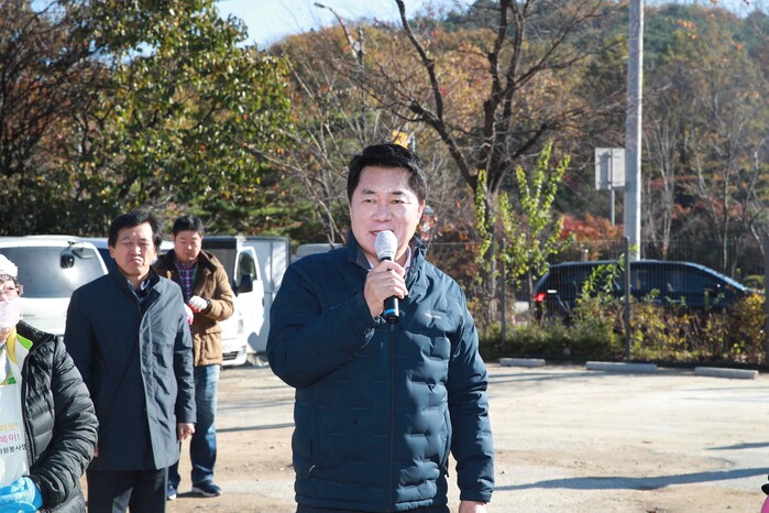 | ▲ 박준희 구청장이 김장과 나눔의 날 행사에서 감사의 인사를 건네고 있다. (사진=관악구청 제공) |