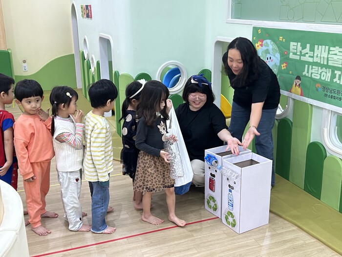 경남도 탄소중립 지원센터를 통해 추진하는 이번 교육은 만 5~7세 어린이들을 대상으로 어린이집 등에 직접 찾아가는 방식으로 이루어지며 ▲인형극 ▲사진 ▲동요 ▲분리수거 체험 등 영유아들이 탄소중립을 쉽고 재미있게 배울 수 있도록 구성했다.