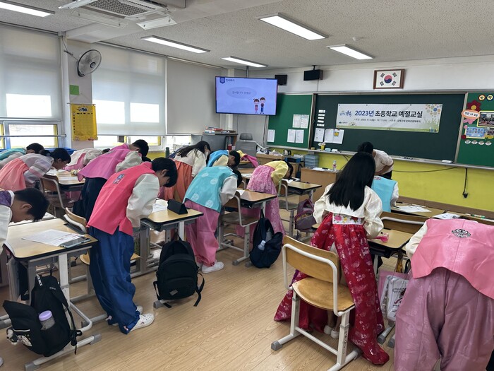 앞서 구는 지난 6월부터 지역내 초등학교 4학년을 대상으로 예절교실 참여학급을 모집했고, 그 결과 40개 학급이 신청해 총 842명의 초등학생들이 예절교육에 참여한다.