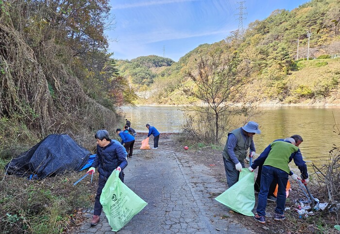 댐 주변 및 하천변을 돌며 폐비닐, 생활쓰레기 등을 수거했다.