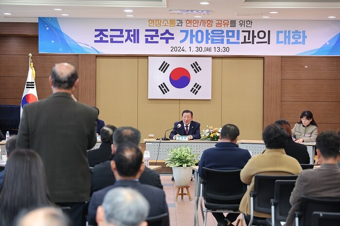 30일 가야읍과 함안면, 여항면, 군북면을 시작으로 소통행보에 나선 조 군수는 지난해 성과와 올 한해 군정운영 기조 및 방향을 군민과 공유하고 각 읍면의 현안사항과 주민의 건의사항 등을 꼼꼼히 챙기며 군민과의 열린 대화로 여론을 파악하고자 했다.