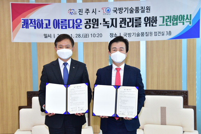 혁신도시 이전 공공기관 11개 중에서 여덟 번째로 진주시와 그린협약을 체결한 국방기술품질원은 이번 협약 체결로 충무공동 하얀울공원에서 환경정화 봉사활동을 펼칠 계획이다.