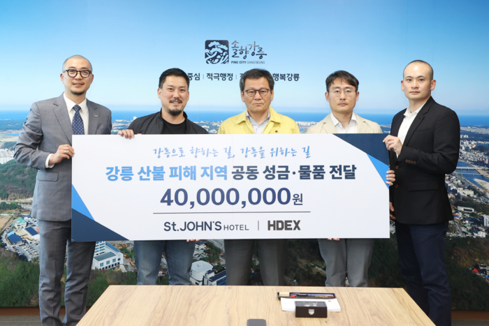 예기치 못한 상황으로 어려움을 겪고 있을 강릉 지역과 시민들을 위해 HDEX(에이치덱스)는 2천만 원 상당의 의류 및 구호 물품을, 세인트존스호텔은 1천만 원의 성금과 휴지, 쌀 등 1천만원 상당의 구호 물품을 강릉시에 전달했으며, 성금과 물품은 산불 피해 복구와 이재민 지원에 사용될 예정이다.