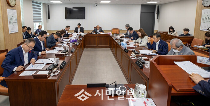 | ▲ 해남군의회, 29일(월) 오전 의회운영위원회실에서 제15차 의원간담회에서 해남군 관계자로부터 농어촌수도 해남비전 추진 상황 등을 보고 받고 있다. / 해남군의회 제공 |