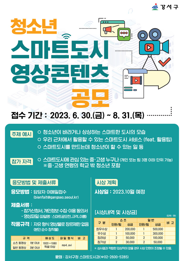 | ▲ 청소년 스마트도시 영상 콘텐츠 공모전 포스터. (사진=강서구청 제공) |