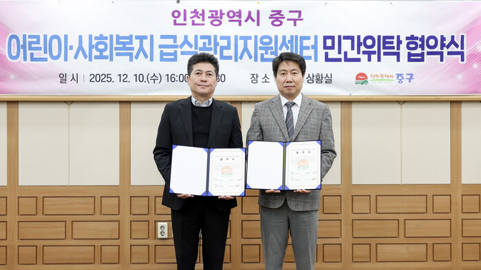 [인천=문찬식 기자] 인천 중구는 최근 인하대학교 산학협력단과 ‘인천 중구 어린이·사회복지 급식관리지원센터 위탁 운영 협약’을 체결했다고 11일 밝혔다.