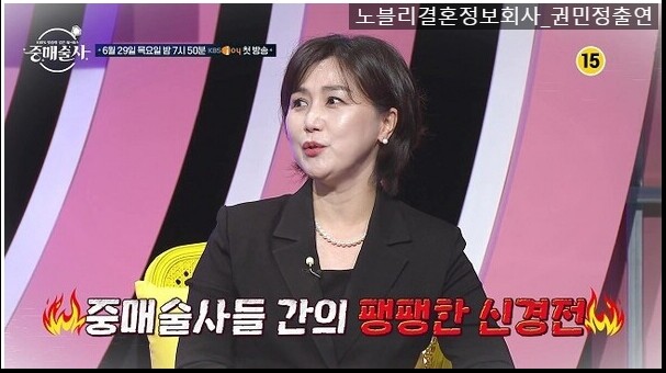 한편, 일반직부터 전문직, 아나운서, 인플루언서 등을 전담으로 하고 있는 노블리 권민정 이사가 kbs joy ‘중매술사’에 출연한다. 중매술사는 원하는 조건에 맞는 이성을 찾기 어려운 이들에게 중매 전문가들이 직접 이성을 연결해 주는 프로그램이다. 매주 목요일 오후 7시 50분 KBS Joy에서 방송된다.