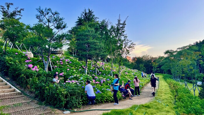 시는 지난 5월 다온숲내의 꽃담원(경북형 마을숲정원)에 특화 경관 수종으로 수국을 심었다.