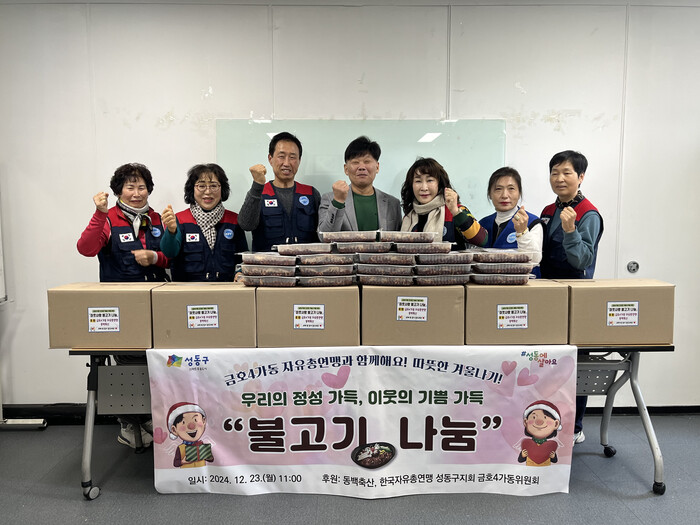 이은희 성동구 여성단체연합회장 및 한국자유총연맹 성동구지회 여성회장은 “지난 10월, 금호4가동 자유총연맹 주관 갈비탕 나눔 행사 때 어르신들이 고기를 잘 드시는 것을 보고 이번 나눔 행사를 기획했다”라며 “어르신들께서 맛있게 드시는 모습을 상상하니 절로 마음이 따뜻해진다. 앞으로도 다양한 나눔 활동에 앞장서 지역사회의 어려운 이웃을 위해 힘을 쏟겠다”라며 의지를 밝혔다.