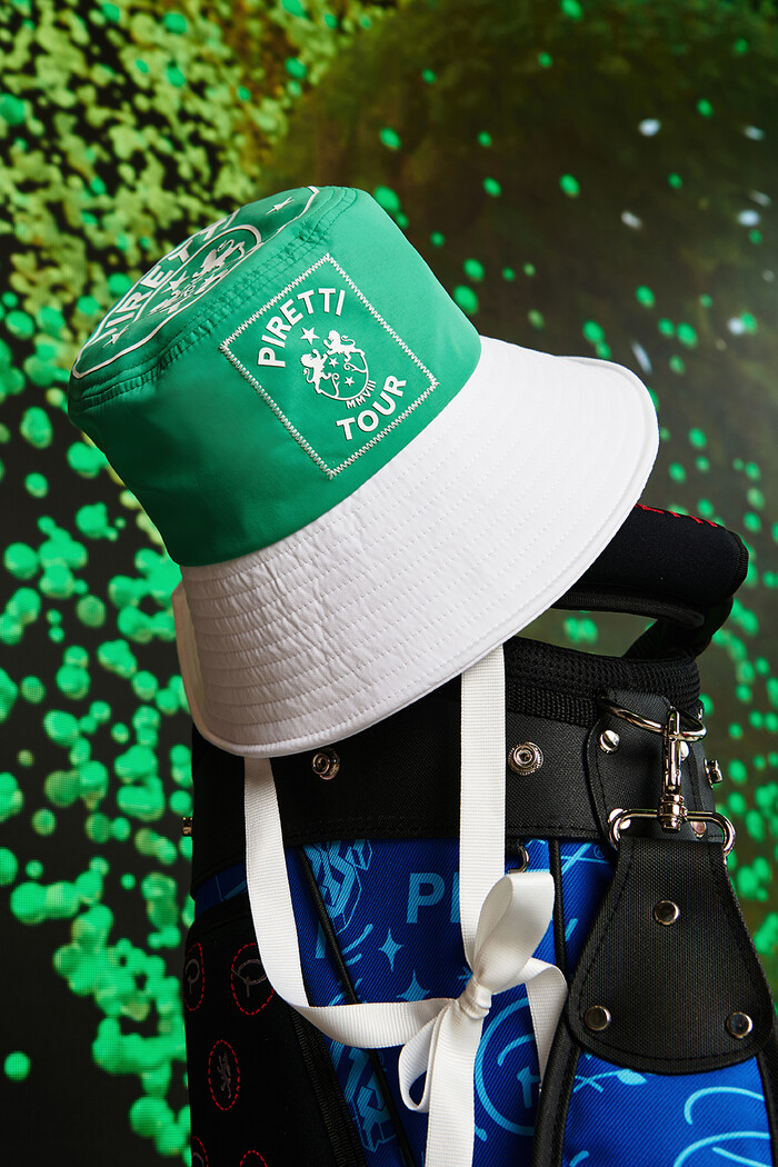 이와 함께 컬러리본 포인트로 차별화를 둔 '바시티 그린 턱끈 HAT', 왕실에서 영감을 받은 피레티 심볼인 사자 등 유니크 그래픽 디자인이 접목된 '라이트 필드 스탠드백', 슬림한 라인과 메탈장식으로 깔끔하고 우아한 '여성 레이디스 트롤리 캐디백' 등 다채로운 아이템을 선보인다.