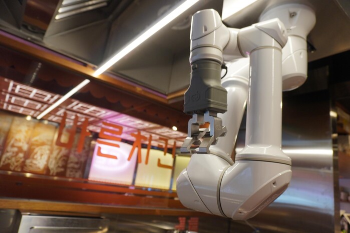 눈으로 담아갈 수 있는 것인 마운틴뷰만이 아니다. 로봇매장에 걸맞게 오픈주방에서 ‘바른봇’이 치킨을 튀기는 이색 광경을 볼 수 있다. 바른봇은 사람을 대신해 치킨의 튀김공정 과정 역할을 수행하며 빠르고 정확하게 치킨을 튀겨주는 치킨 조리로봇이다.