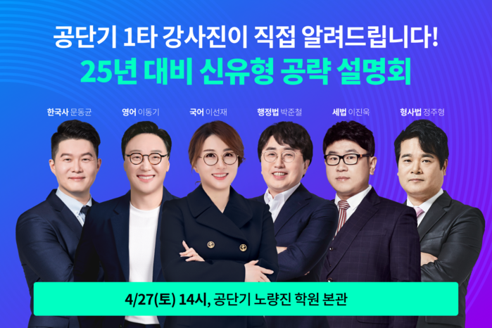 공단기는 신유형 문제 대비를 위해 오프라인 설명회를 기획하였으며, 공단기의 대표 강사진인 국어 이선재, 영어 이동기, 한국사 문동균, 행정법 박준철 등이 각 과목별 학습법 및 합격 전략을 공개할 예정이다. 설명회 종료 후에는 참여한 수험생들을 대상으로 1:1 학습 상담도 진행되어 개인 맞춤형 학습 계획 수립에도 도움을 준다.