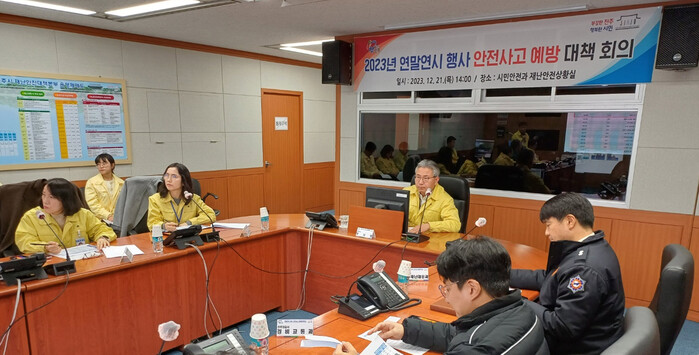 진주시는 연말연시 행사 안전사고 예방을 위해 21일 진주경찰서, 진주소방서 및 시 관계자가 참석한 가운데 신종우 부시장 주재로 안전사고 예방 대책 회의를 개최했다.