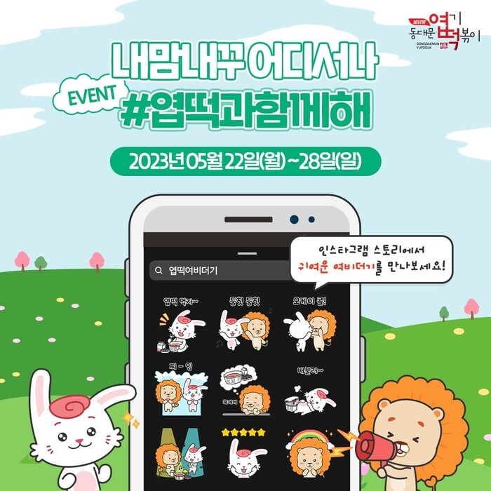 동대문엽기떡볶이는 오는 28일까지 ‘여비x더기’ 인스타그램 스티커와 함께 즐기는 일상 모습을 개인 인스타그램 스토리에 게재한 고객을 대상으로 총 10명에게 엽기떡볶이 14,000원 쿠폰을 제공한다