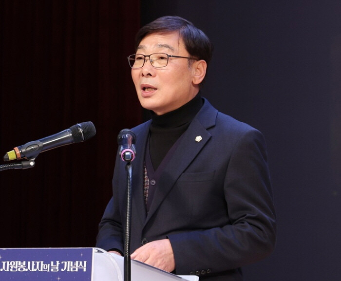 | 김병전 의장이 ‘2025 부천시 자원봉사자의 날 기념식’에 참석, 축사를 하고 있다. (사진=부천시의회) |