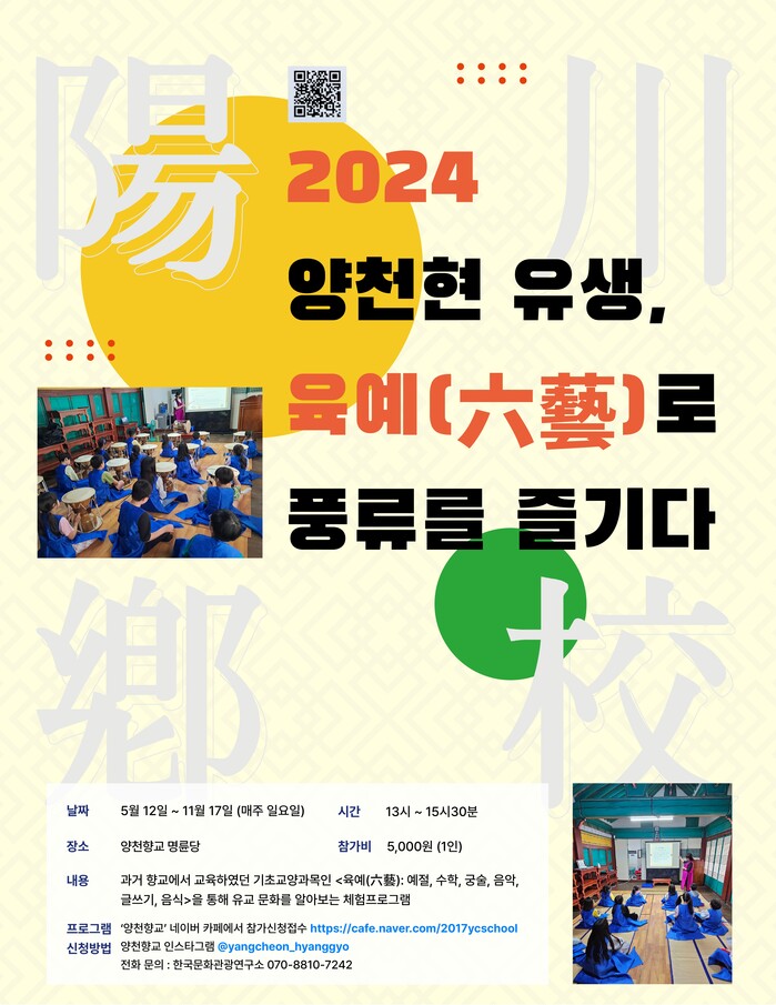 본 프로그램은 사전접수를 통해 참여가능하며 프로그램 일정 확인과 신청은 양천향교 인터넷카페에서 할 수 있다. 참가비는 프로그램당 5천원이다.