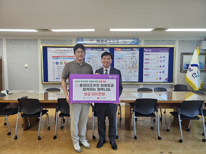 [아산=박명수 기자] 충남 아산시가 올웨이즈키친(주)에서 22일 취약계층 지원을 위한 성금 500만원을 기부했다고 밝혔다.