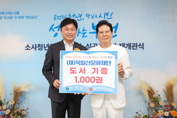 [부천=문찬식 기자] 경기 부천시는 1일 심곡도서관 재개관식에서 ‘재단법인 목일신문화재단 도서 기증식’을 열고, 어린이와 시민을 위한 도서 나눔을 진행했다.