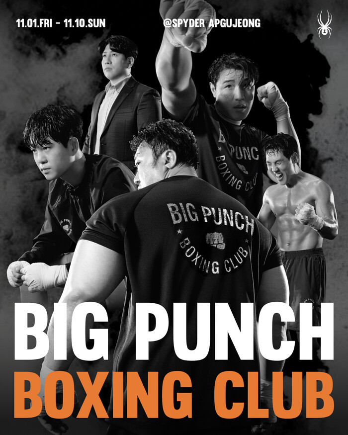 한편, 스파이더는 빅펀치 복싱 클럽 컬렉션 런칭을 기념해 오는 11월 1일(금)부터 10일(일)까지 열흘간 스파이더 압구정 스토어에서 팝업을 진행한다. 팝업스토어에는 펀치 대회를 비롯한 다양한 프로그램과 선물들을 마련할 예정이다.