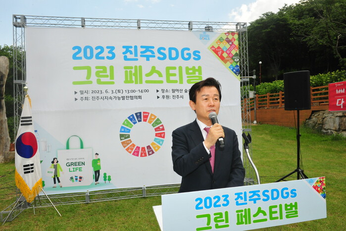 [진주=엄기동 기자] 진주시지속가능발전협의회는 지난 3일 월아산 숲속의 진주 자연휴양림 잔디마당에서 ‘2023 진주 SDGs(지속가능발전목표) 그린 페스티벌’을 개최했다.