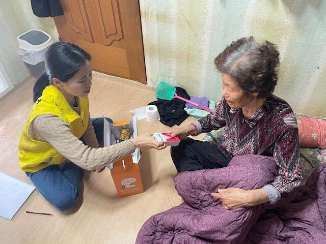 이번에 전달한 ‘효(孝)꾸러미’는 치매안심센터 맞춤형사례관리팀이 직접 대상자 가정을 방문하여 영양식과 식재료, 미끄럼방지 양말, 안전관리 스티커 등 물품 10여종을 전달하고 어르신들의 ▲영양상태 및 안부 확인 ▲복약지도 ▲인지기능훈련 ▲가정 내 안전(가스, 전기, 낙상 위험물 등)점검 및 안전사고 예방교육도 함께 병행했다.