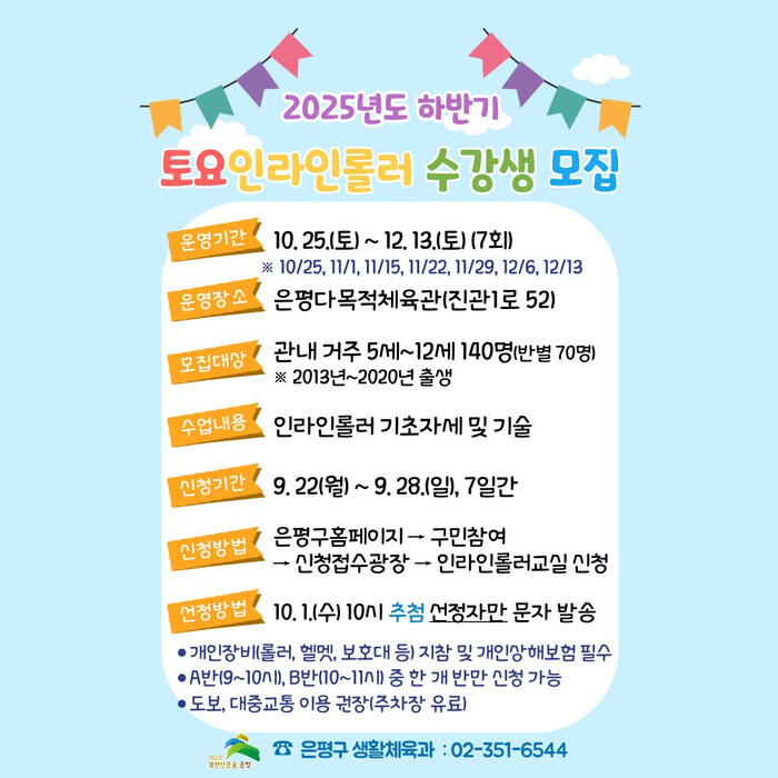 | ▲ 은평구 하반기 토요 인라인롤러 교실 수강생 모집 안내 포스터. (사진=은평구청 제공) |