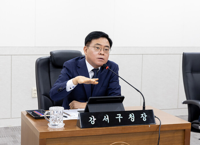| ▲ 진교훈 구청장이 구청 대회의실에서 열린 ‘겨울철 안전대책 회의’를 주재하고 있다. (사진=강서구청 제공) |