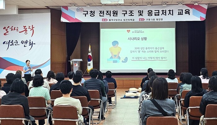 [시민일보 = 여영준 기자] 동작구(구청장 박일하)는 지역 내 응급의료 역량을 강화하고자 공무원을 대상으로 ‘응급처치 전문요원 양성 교육’을 추진한다.