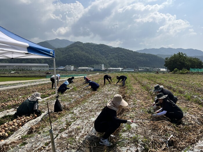 이날 군 주민복지과 직원들은 야로면 매촌리 소재 취약계층 양파 농가를 방문해 양파 수확 작업을 실시하며 구슬땀을 흘렸다.