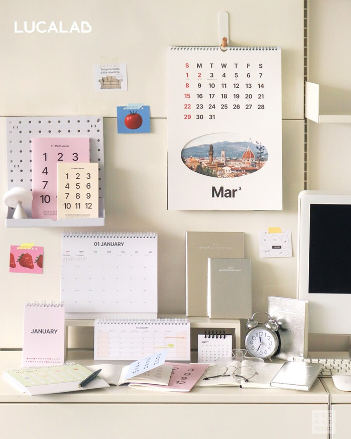 탁상형 달력 형태의 ‘루카랩 습관 체크 캘린더’는 앞뒷면을 같은 월에 각기 다른 용도로 사용할 수 있다. 앞면은 일정과 계획을 기록하는 일반 달력으로 사용하고, 뒷면은 월(月) 옆에 독서, 운동 등 지키고 싶은 습관을 기록한 후 일자별로 체크하기 편리하게 디자인했다는 게 회사측의 설명이다.