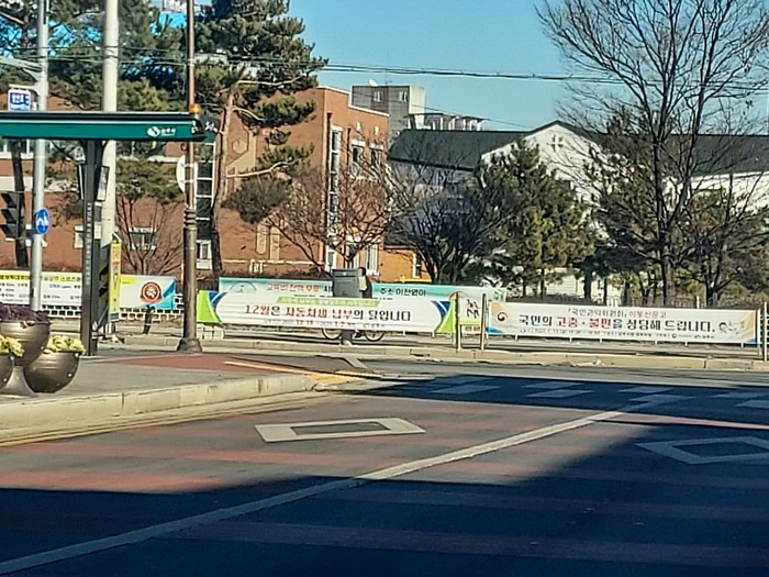 [상주=박병상 기자] 경북 상주시청 청사 입구 도로변에 불법으로 설치된 현수막으로 도시미관은 물론 이곳을 지나는 운전자들의 시야 방해 등의 문제가 발생하고 있지만 단속은 미비하다는 지적이다.