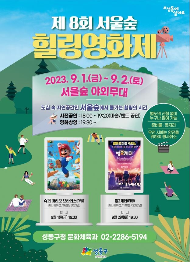 1일은 올해 4월 개봉한 영화인 '슈퍼 마리오 브라더스'를 시작으로, 2일에는 서울숲 분위기와 잘 어울리는 뮤지컬 영화 '씽2게더'를 상영할 예정이다.