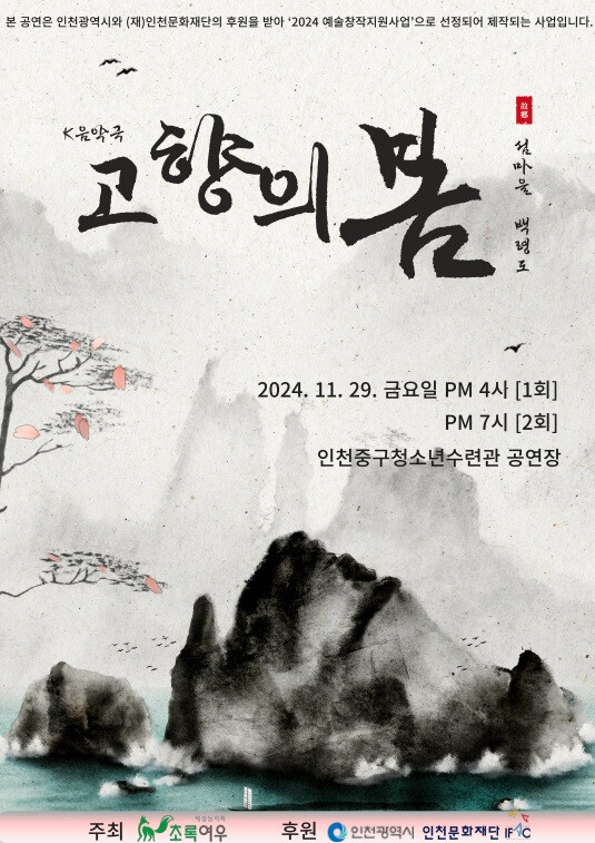 (K-음악극 고향의 봄)은 인천의 서해5도중 가장 북쪽에 위치한 백령도의 점박이 물범을 소재로 고향에 대한 그리움, 평화, 생태계 보존 등의 메시지를 품고 있는 창작극으로 창작팀과 배우들, 연주자들이 오랫동안 준비해온 초연작품이다.