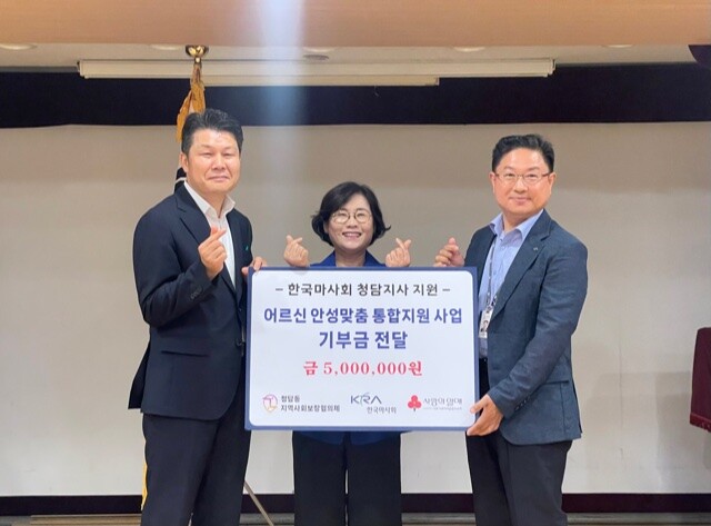 [시민일보 = 이대우 기자] 서울 강남구(구청장 조성명) 청담동이 지난 13일 한국마사회 청담지사와 함께 ‘어르신 안성맞춤 통합지원 사업’ 기부금 전달식을 열고 500만원을 전달했다.