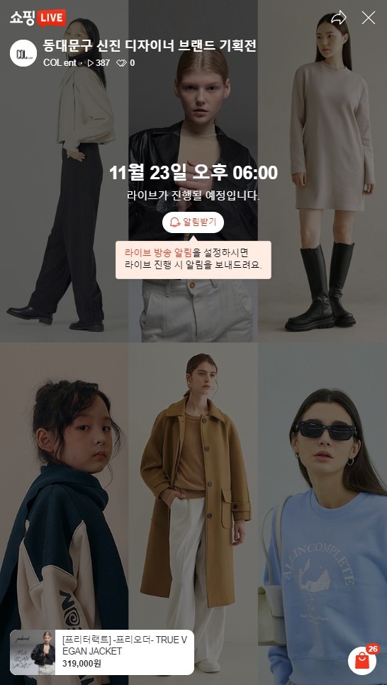 | ▲ 23일 오후 6시 오픈 예정인 ‘동대문구 신진 디자이너 브랜드 기획전’ 네이버 쇼핑라이브 페이지 (사진제공=동대문구청) |
