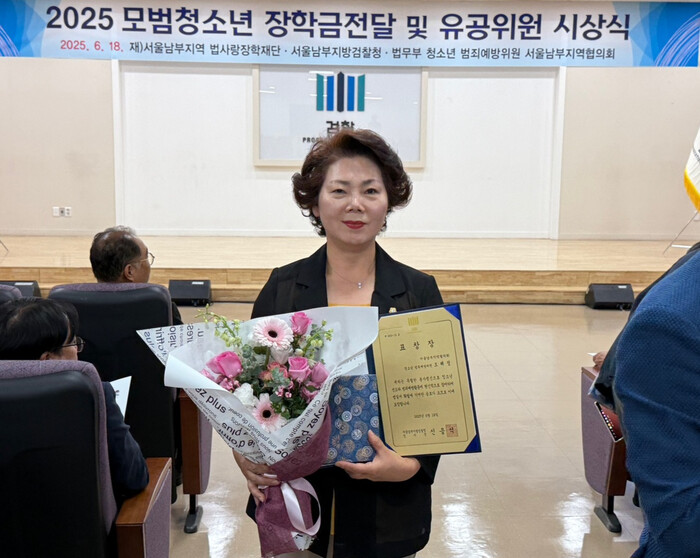 [시민일보 = 박소진 기자] 서울 양천구의회(의장 윤인숙) 오해정 의원이 최근 ‘2025년 모범청소년 장학금 전달 및 유공위원 시상식’에서 법무부 청소년 범죄예방 활동 유공자로 선정돼 표창장을 받았다고 밝혔다.