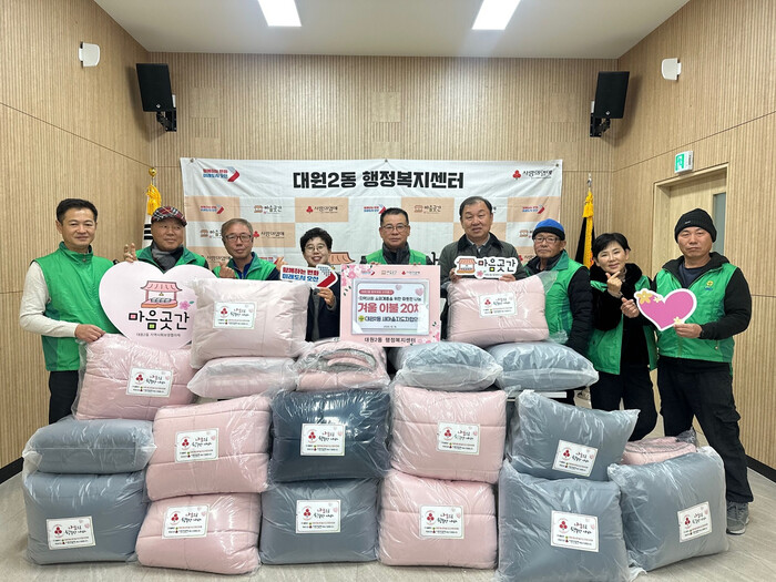 경기 오산시 대원2동이 최근 대원2동 새마을지도자협의회로부터 겨울철 어려운 이웃들을 위한 따뜻한 겨울 이불 20채를 후원 받았다. 사진은 후원식에서 관계자들이 기념 촬영을 하는 모습. (사진=오산시청 제공)