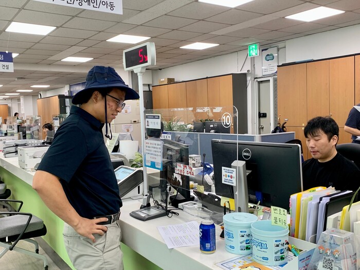 경기 여주시 세종대왕면 행정복지센터는 민원인 응대 과정에서 발생할 수 있는 비상 상황에 대비하기 위해 경찰과 합동으로 모의훈련을 실시했다. 사진은 이날 훈련이 진행되고 있는 모습. (사진=여주시청 제공)