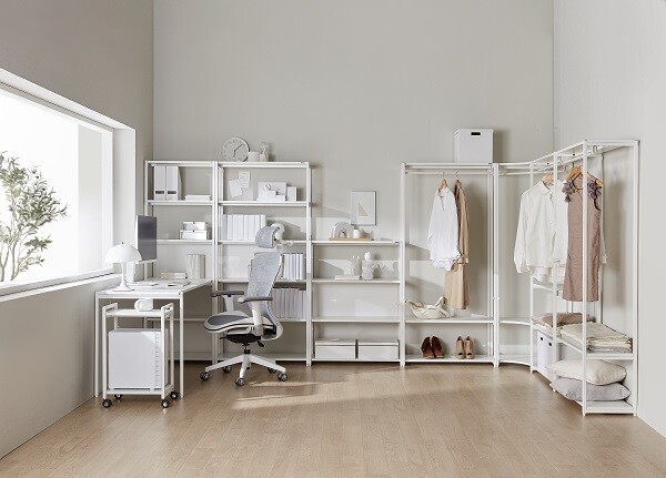 특히 프로토 시리즈 책상과 책장, 시스템 행거는 고객이 원하는 대로 확장, 분리가 가능할 수 있도록 암수 짜임 방식으로 디자인한 것이 특징. 자체적으로 개발한 ‘ㄷ’자 클립으로 가구를 더욱 견고하게 연결해 흔들림 없는 사용감을 선사한다.