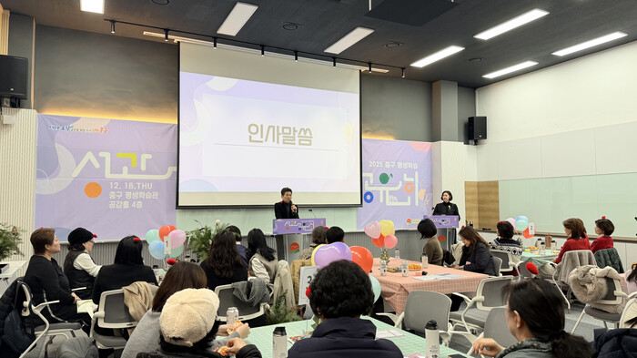 [인천=문찬식 기자] 인천 중구(구청장 김정헌)는 올 한 해 평생학습 사업의 주요 성과를 공유하고, 관계자 간 교류 증진을 위해 지난 18일 중구 평생학습관 공감홀에서 ‘2025년도 중구 평생학습 성과공유회’를 성황리에 개최했다.