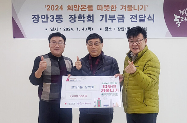 이에 김용준 장안1동장은 “30년 동안 지역내 어려운 이웃을 위해 후원해 주시는 장안3동 장학회에 감사드리며, 도움이 필요한 학생들에게 전달해 온정과 희망을 느낄 수 있도록 하겠다”고 답했다.