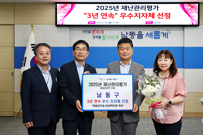 [인천=문찬식 기자] 인천 남동구가 행정안전부 주관 ‘2025년 재난관리평가’에서 우수기관으로 선정되며, 민선 8기 출범 이후 ‘3년 연속’ 우수기관 선정이란 성과를 달성했다.