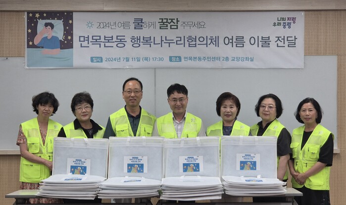 또한, 지난 11일에는 면목본동 행복나누리협의체로부터 여름 냉감 이불 30채를 전달받았다. 후원받은 물품은 난방 사각지대인 취약계층 중장년 남성 1인가구 30명에게 전달된다.