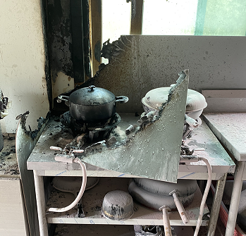 화재 원인은 가스레인지 위 냄비 안 음식물이 탄화된 것으로 보아 부주의로 화재가 발생한 것으로 추정된다.