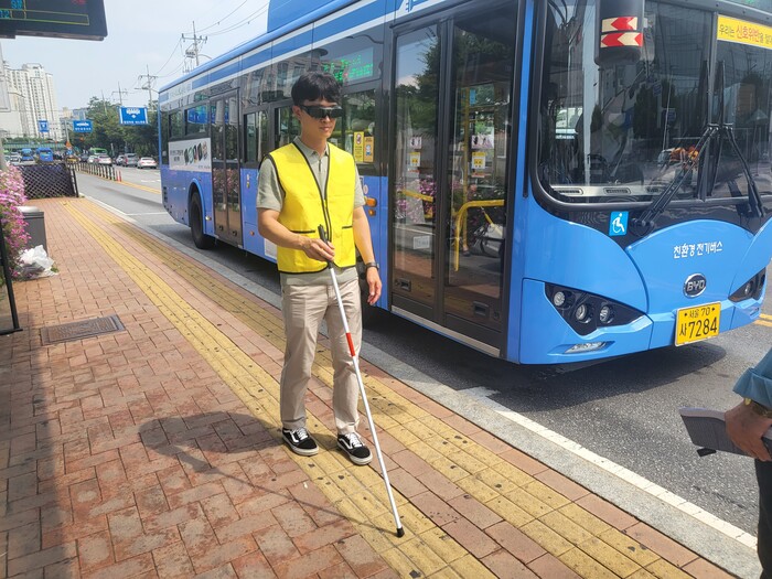 [시민일보 = 이대우 기자] 서울 동대문구(구청장 이필형) 유형철 주무관이 ‘동대문구 국민정책디자인단’의 현장조사의 일환으로 시각장애인들의 평소 겪는 어려움 체험에 나섰다.