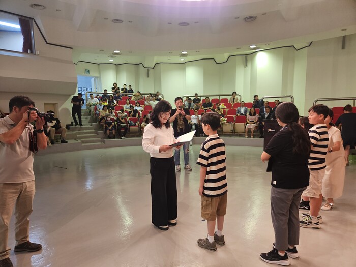 [구미=박병상 기자] 경북 구미시가 바르게살기운동구미시협의회 주관으로 지난 26일 구미시립중앙도서관 강당에서 수상자 및 학부모 80여명이 참석한 가운데 '제41회 단계백일장' 시상식을 개최했다.