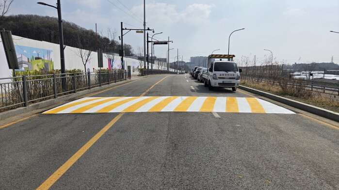 [시민일보 = 민장홍 기자] 경기 오산시는 가수초등학교 통학로 안전 확보를 위해 인근 우미린 레이크시티 아파트 공사장 진출입로 주변에 과속방지턱 4곳을 신설했다고 20일 밝혔다.