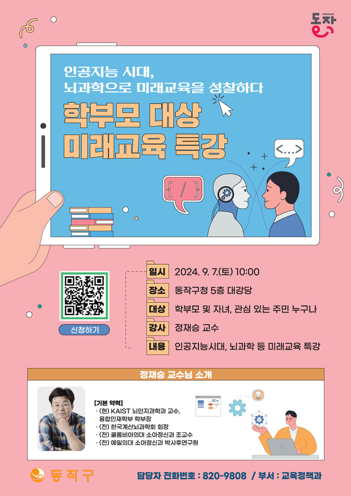 학부모, 자녀는 물론 미래 교육에 관심 있는 주민 누구나 무료로 참석할 수 있으며, 포스터의 QR코드를 통해 신청하면 된다. 단, 선착순 접수 완료 시 사전등록은 마감된다.