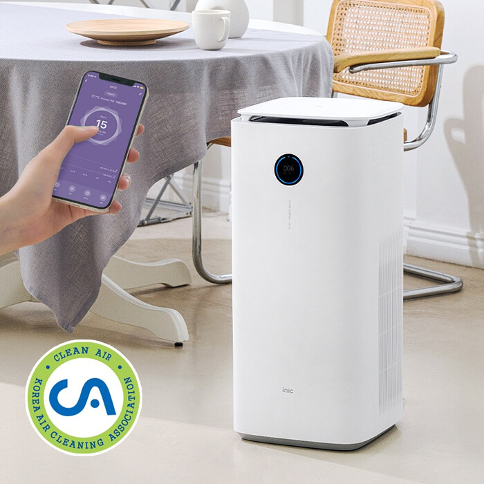 국내 생활가전 기업 ㈜아이닉의 공기청정기 'iAP22'는 최대 23평의 면적 관리가 가능하며, CA 인증을 받은 H13 등급 특수 항균 헤파필터를 적용해 생명력이 강한 균번식을 효과적으로 억제한다. 판형 필터 대비 약 1.5배 넓은 면적을 자랑하는 원통형 필터가 360도 전방위에서 오염된 공기를 흡입해 공기 청정 범위를 극대화한다. 필터 유해 성분 검출 테스트를 완료해 안정성을 인증 받았다.